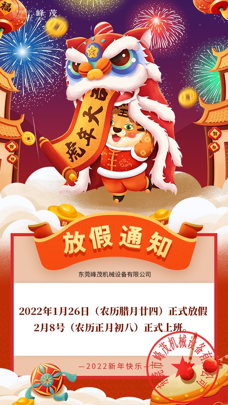 峰茂機械設(shè)備有限公司2022春節(jié)放假通知: